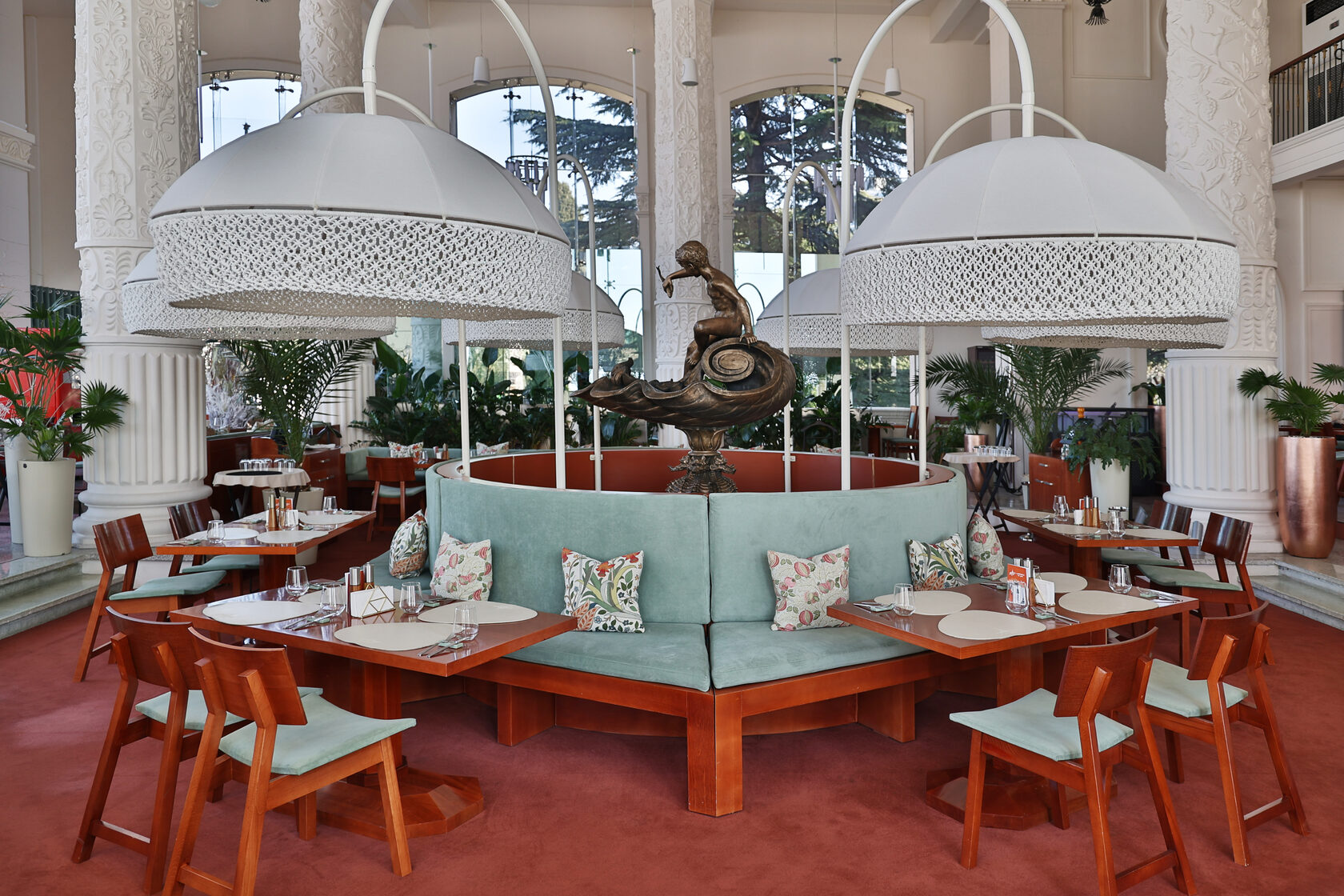 За окном – вид на заснеженный хребет Аибга и вершину Чёрная Пирамида, внутри – колорит Средиземноморья. В фестивальном меню ресторана классические утренние блюда дополнили пряными, южными акцентами. Так, например, хрустящий круассан готовят «по-аджарски» с яйцом, питу подают с томлёной бараниной, аджикой и сыром Чанах, а запеканку Сан Себастьян – с хурмой и Nutella.