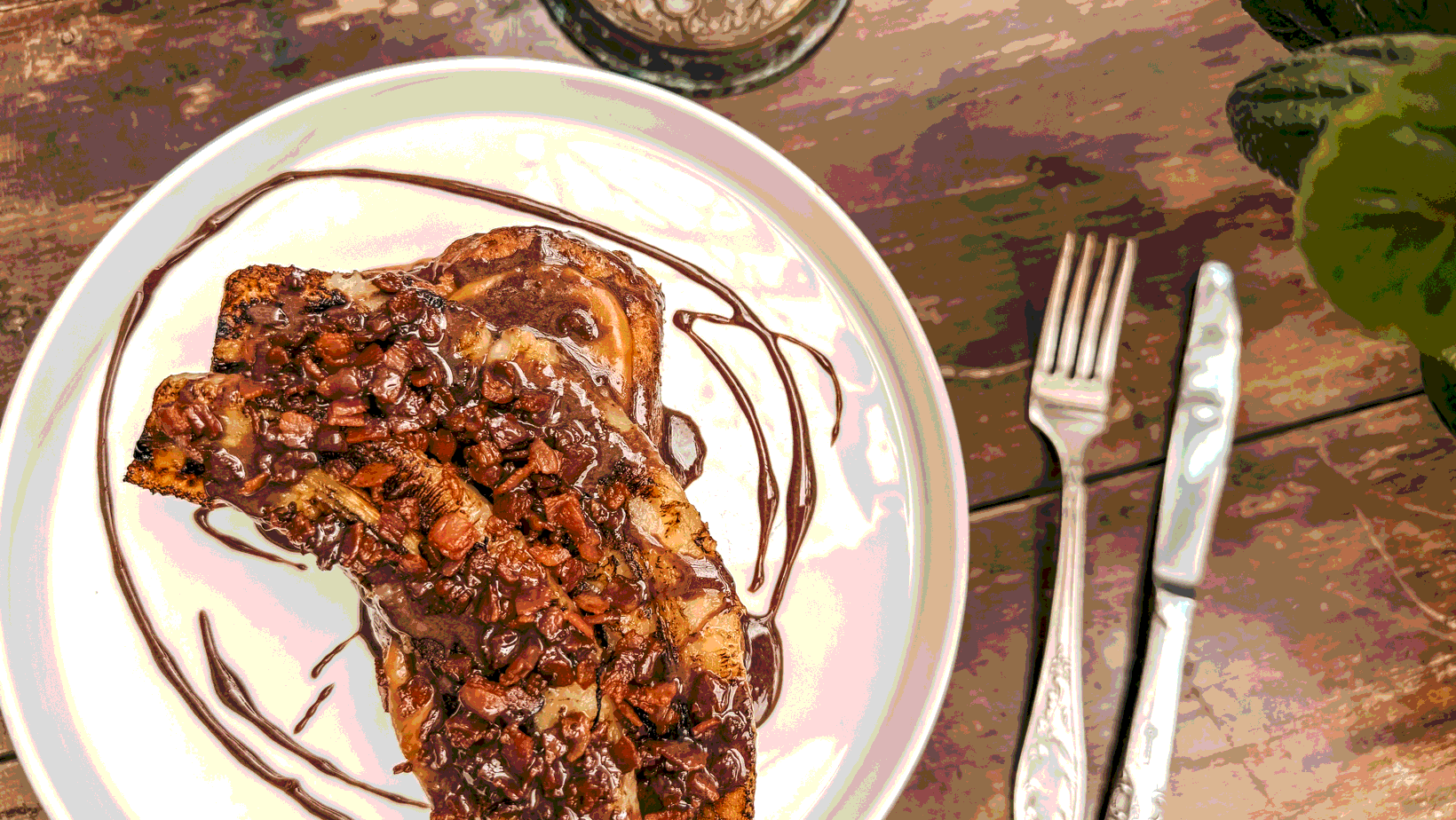Один френч-тост с арахисовой пастой, карамелизированным бананом, пастой Nutella и криспи беконом – и отличное настроение на целый день вам обеспечено!